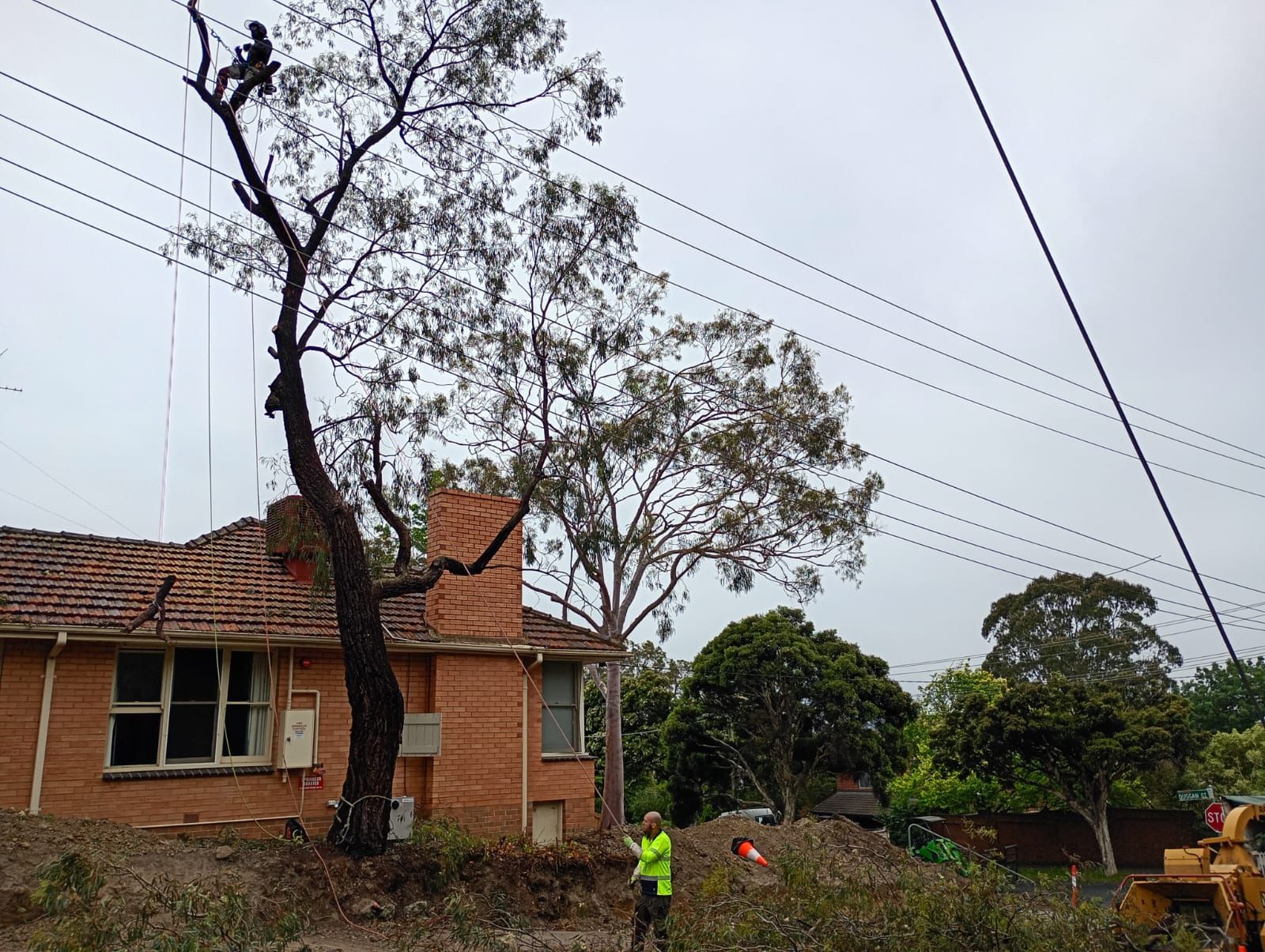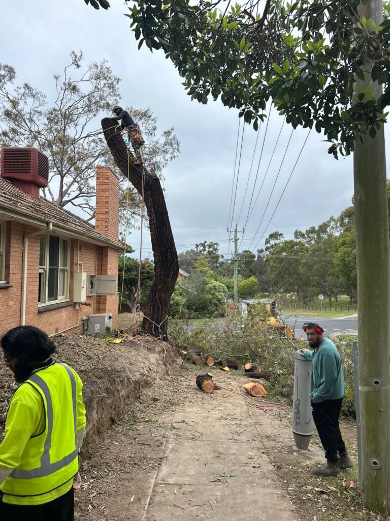 In Balwyn, VIC, our team safely removed a large leaning tree positioned close to a residential home and overhead powerlines. Due to its angle and proximity to the roof and chimney, the tree was carefully dismantled in controlled sections using ropes and precision cutting techniques to protect the property below. Each piece was lowered safely to the ground, minimising risk and disruption. The job was completed efficiently, with all debris cleared and the site left clean and secure.