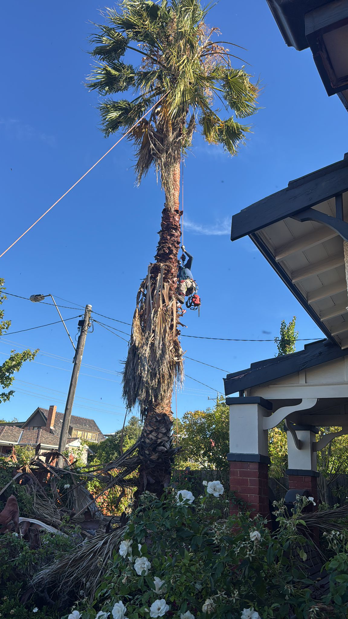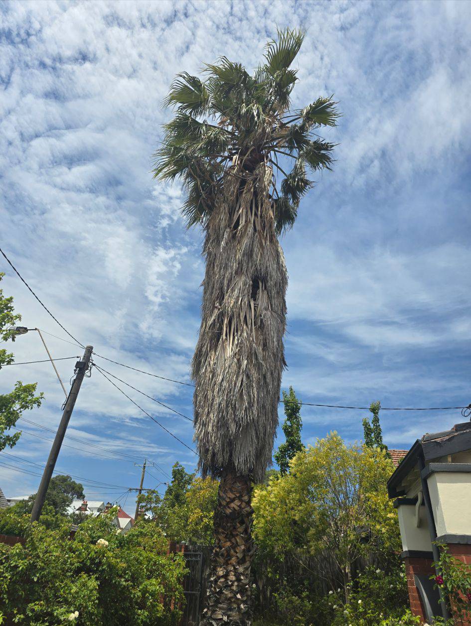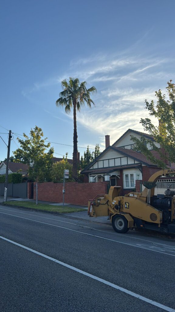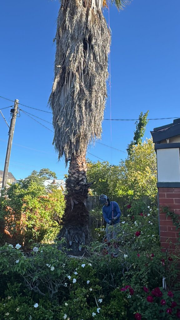 In Glen Iris, VIC, our team recently completed the safe removal of a tall palm tree located close to residential buildings and overhead powerlines. Due to its height and surrounding garden beds, the tree was carefully dismantled in sections using controlled rigging techniques to ensure nearby homes and landscaping were protected. Each stage of the removal was carried out with precision, and all debris was cleared from site, leaving the property clean and tidy once the job was complete.