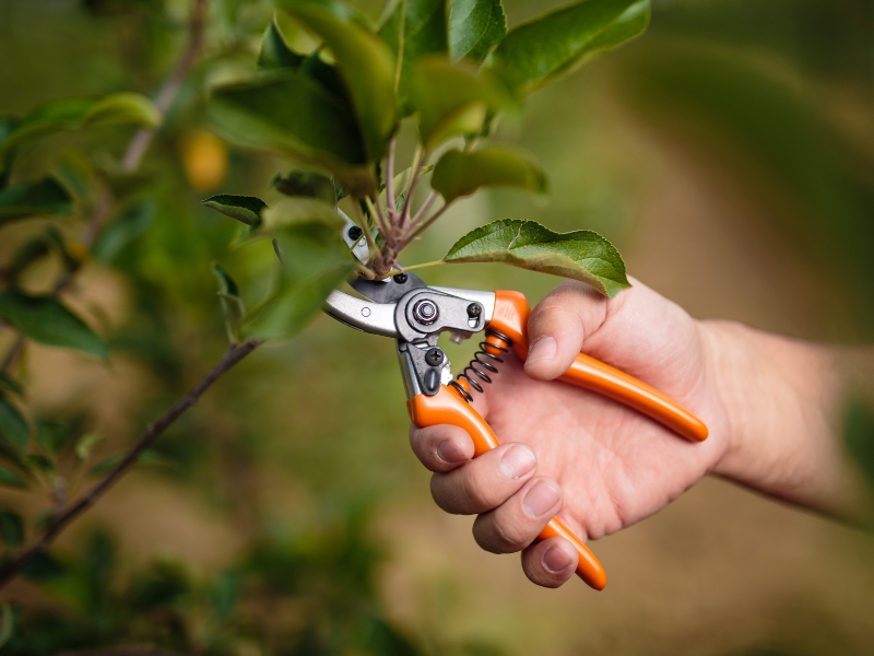 • Make clean, angled cuts with sharp tools so the tree heals fast and plants don’t collapse into chaos.